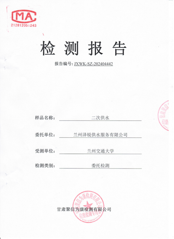 根据安宁区卫生健康局对二次供水设施需定期清洗消毒的规定要求,学校后勤保障部委托兰州泽锐供水服务有限公司于2024年4月6日至4月27日期间,利用双休日分时、分片区停水,并按照行业严格程序对学校大小16个蓄水池(水箱)进行了本年度上半年的清洗消毒工作,清洗后对各水库(水箱)水质进行抽样检验,检验结果均为“样品所检项目:PH、臭和味、色度、浑浊度、肉眼可见物、游离氯、总大肠菌群、菌落总数符合《生活饮用水卫生标准》GB5749-2022的要求”。现对相关清洗及抽样检验结果予以公示。