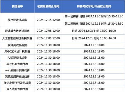 程序设计挑战赛:第一场2024年11月30日12:00;第二场2024年12月15日12:00