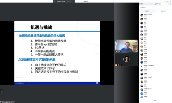 范红超以众源地理信息科学为题,详细而系统的介绍了众源地理信息的起源、分类、相关研究,重点讲述了OSM(OpenStreetMap)和Mapillary两个众源地理信息平台的应用。针对OSM数据质量的检验,总结出任务驱动的数据质量分析、贡献者与数据质量的关联关系、数据发展的历史分析、城市规则的运用、区域相似性与数据质量关联关系等检验方法。范红超结合自己的经历和研究,指出智能终端设备的强劲发展,跨平台App的发展,5G网络、市民参与的潮流,以及国家一带一路倡议的重大需求等为众源地理信息科学带来了很好的发展机遇,同时也带来了诸如自主地理信息平台、关键卡脖子技术等领域内的挑战。展望未来,众源地理信息科学必将成为主流潮流并大有用武之地。