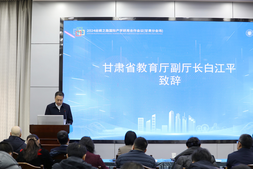 1月10日,由教育部指导,教育部学校规划建设发展中心主办,甘肃省教育厅和兰州交通大学承办的2024“丝绸之路”国际产学研用合作会议(甘肃分会场)在我校召开。甘肃省教育厅副厅长白江平、兰州交通大学常务副校长聂磊出席会议,兰州大学、西北民族大学、西北师范大学、兰州理工大学、兰州交通大学、甘肃农业大学校领导和相关处室负责人以及来自德国、巴基斯坦、克罗地亚等国家的百余名专家学者线上线下参会。会议由副校长闫浩文主持。