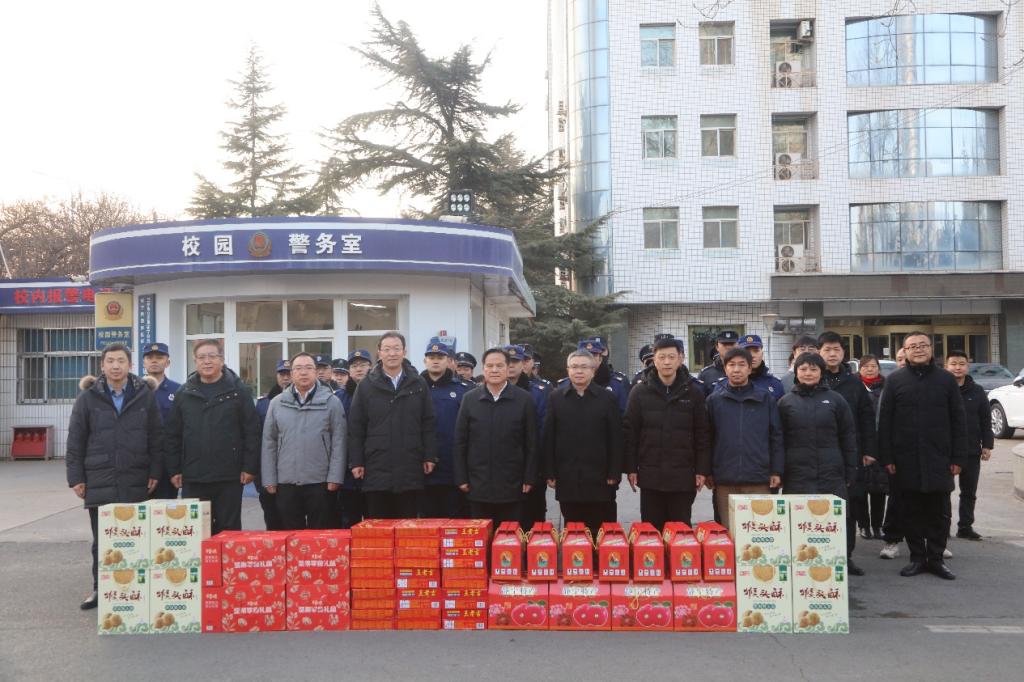 校工会为大家准备了干果大礼包、水果、饮料等慰问品。全体人员对学校领导的关怀表达感激之情,决心不辜负学校领导的期望,坚守岗位、认真履职,为广大教职工、家属以及假期留校的同学度过欢乐祥和、无忧无虑的寒假奉献自身的力量。