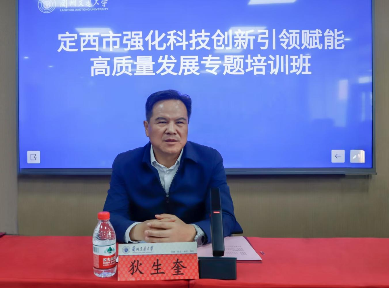 5月12日,定西市强化科技创新引领赋能高质量发展专题培训班在兰州交通大学开班,定西市党政领导干部50人参训。兰州交通大学党委书记狄生奎,定西市委常委、市委组织部部长李继红,兰州交通大学党委常委、副校长陈喜春出席开班仪式。