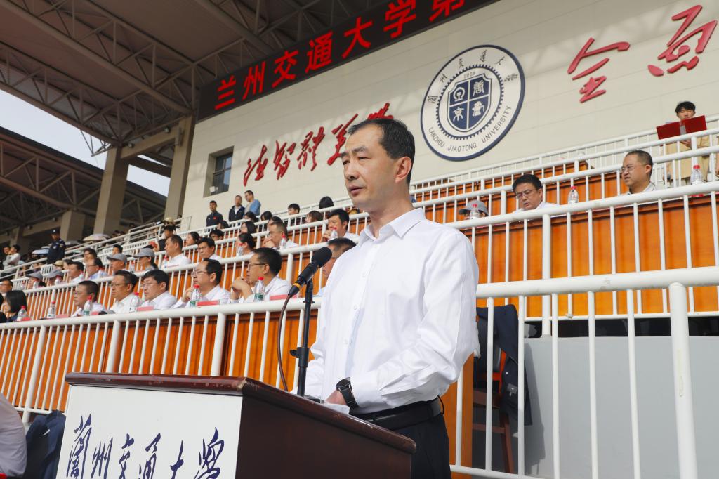 青春飞扬展风采,拼搏奋进向未来。5月14日上午,兰州交通大学第五十六届运动会开幕式在学校北校区体育场隆重举行。校领导狄生奎、聂磊、朱廷珺、王爱平、王珺 、苏程、陈光武、张弢、陈喜春等出席开幕式。各学院师生代表、运动员、裁判员及工作人员齐聚绿茵场,共同见证这场激情与活力交织的体育盛会。开幕式由党委常委、副校长、校体委主任陈光武主持。