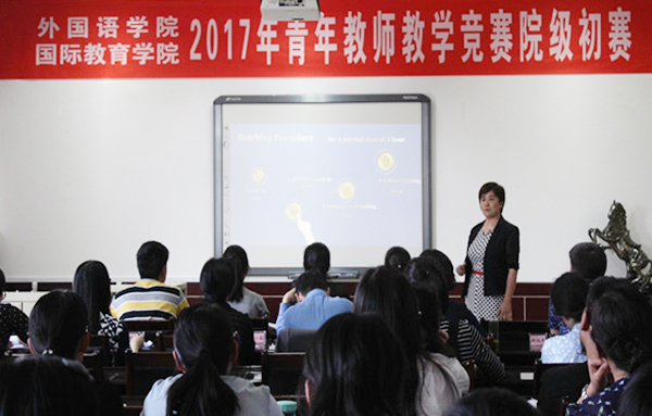 为充分调动青年教师教学积极性,夯实青年教师教学基本功,切实提高教学能力和水平,激发青年教师爱岗敬业、潜心教学的工作热情和创新精神,按照学校第22届青年教师教学竞赛的通知相关要求,5月27日下午,外国语学院、国际教育学院在第八教学楼D座举行了青年教师教学竞赛院级比赛。