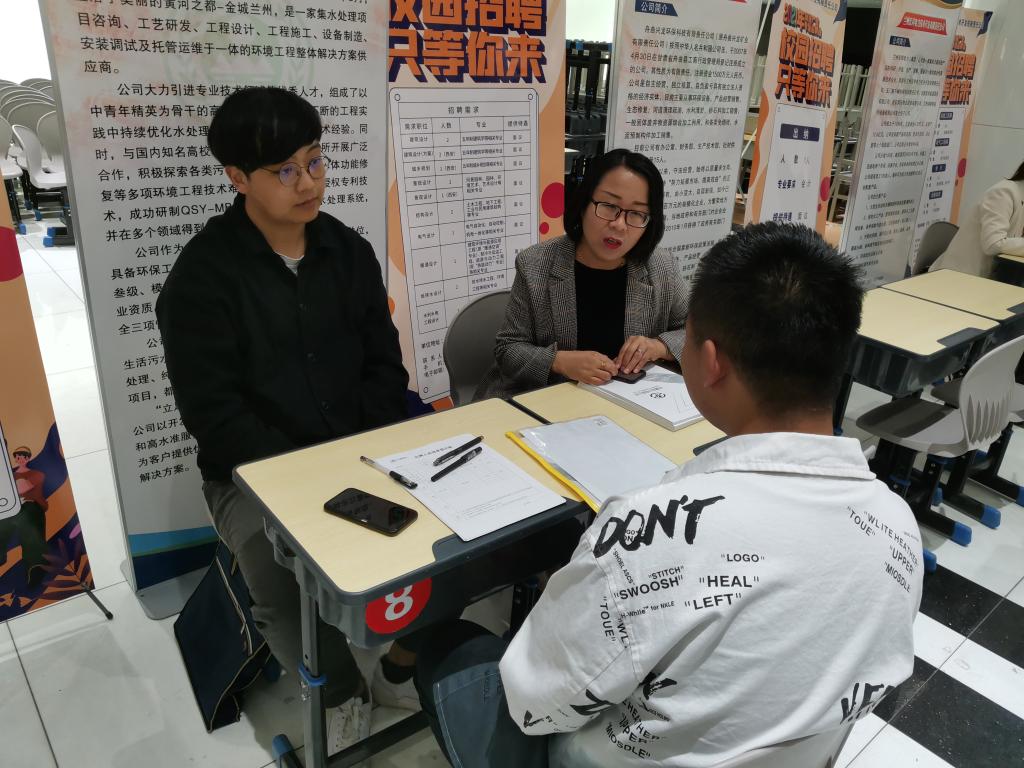 在招聘会现场,甘肃省膜科学技术研究院有限公司、甘肃地质基础工程公司、甘肃有色工程勘察设计研究院、甘肃省有色地勘局张掖矿产勘查院等共计20余家省内外知名企业共提供近200多个招聘岗位,范围涉及环保产品制造、教育、电力、环保科技等多个领域。相关专业300余名毕业生参与了此次招聘会,有90余个岗位与应聘同学达成了初步就业意向。