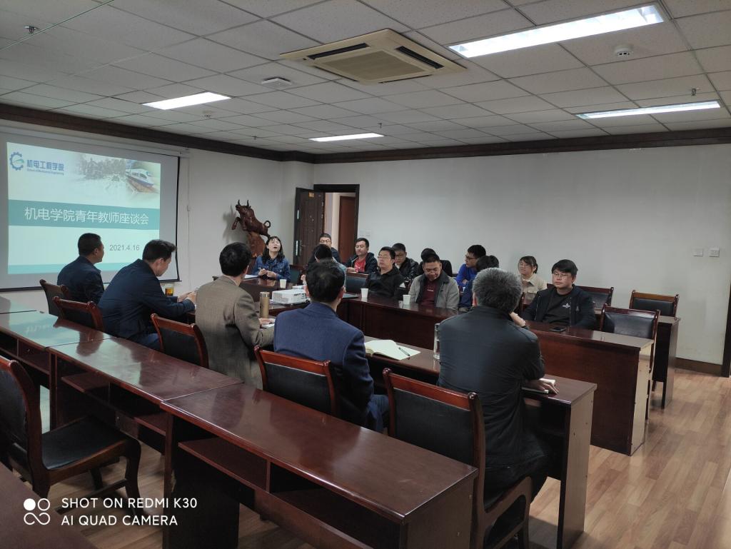 为进一步落实习近平总书记在党史学习教育动员大会上的讲话精神,把学习党史同总结经验、观照现实、推动工作结合起来, 4月16日下午,结合“为党旗添光彩、为师生办实事”实践活动,机电工程学院在科技楼1724会议室召开学院青年教师座谈会,学院院长张红兵主持会议,学院全体党政领导班子成员及近5年入职的青年教师共二十余人参会。