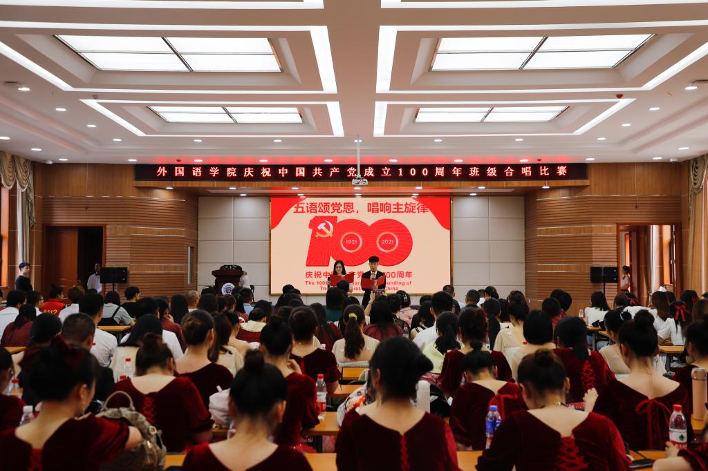 6月25日,“五语颂党恩、唱响主旋律”外国语学院庆祝中国共产党成立100周年班级合唱比赛决赛在二教报告厅成功举办。校党委常委、副校长马军党、党建武出席比赛现场。
