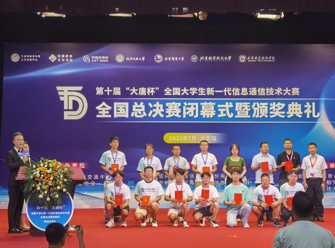 7月14日至15日,由工业和信息化部人才交流中心、中国通信企业协会主办的第十届“大唐杯”全国大学生新一代信息通信技术大赛全国总决赛在北京航空航天大学举行,我校电信学院通信工程专业申东老师带队,裴豫欣、石燕京两位同学组队参赛并斩获全国一等奖,实现了我校在该项赛事成绩的历史性突破。