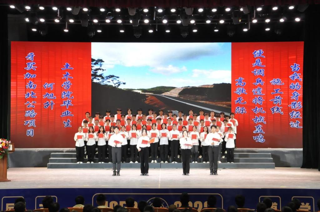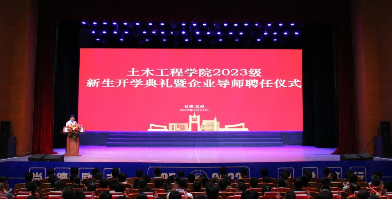 典礼最后,土木学院党委负责人介绍了学院企业导师进班级背景,学院前置构建了以辅导员为主的生活导师、专业教师为主的学业导师以及企业导师三段对接的人才培养体系,致力于全过程培养学生的职业能力、塑造学生的职业品德、培育学生的职业专长,帮助学生树立从“谋求职业”走向“成就事业”再到“铸就伟业”的远大理想。这是学校、企业、学院、校友,“立足中国特色社会主义土壤,携手助力学生,向下扎根、向上生长,上大舞台、入主战场、成大事业”的有力举措。希望同学们拓展视野学会自主学习、胸怀正气努力提升本领、崇尚简朴学会思考辨别。在今后四年的交大年华中,以最饱满的精神投入到每一天的学习和生活中,去粗取精、去伪存真,稳扎稳打、步步为营,自信乐观、精神充盈,在强国之路上奋力奔跑,在复兴伟业中挺立潮头,跑出新一代兰交大人的最好成绩。