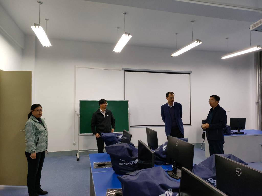 座谈会后陈光武深入学院实验室进行实地调研,详细了解各实验室的建设和使用情况。