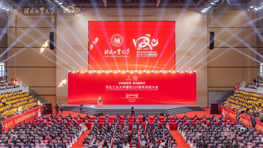 上午10时,河北工业大学建校120周年庆祝大会在天津市北辰校区隆重举行,河北工业大学党委书记韩旭致辞,党委副书记贺立军主持大会。会上,中共中央政治局原常委、全国政协原主席、河北工业大学校友贾庆林致信祝贺。河北省政府副省长董兆伟出席大会并宣读贺信。天津大学党委书记杨贤金代表兄弟院校致辞。亚利桑那大学全球事务副校长Jenny Lee代表合作院校致辞。中国工程院院士、重庆大学校长王树新作为校友代表致辞。签约仪式中,河北工业大学分别与天津市红桥区人民政府,天津市北辰区人民政府,张家口市人民政府,廊坊市人民政府,沧州市人民政府,承德市人民政府、河北交通投资集团有限公司签订战略合作协议。