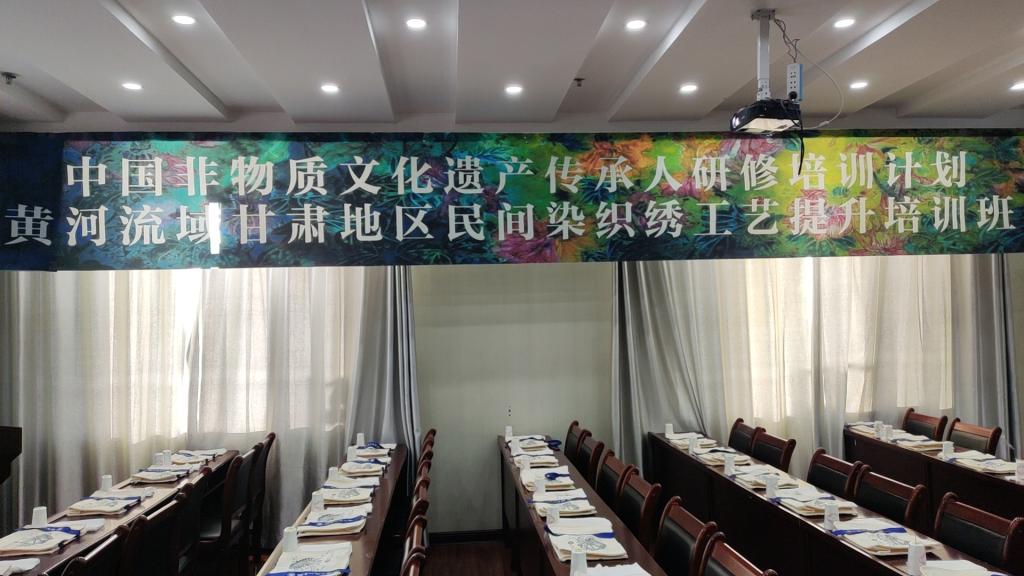 11月13日上午,由甘肃省文化和旅游厅指导,兰州交通大学主办,兰州交通大学研究院染缬艺术研究所(博物馆)承办,临夏回族自治州文化馆协办的“中国非物质文化遗产传承人研修培训计划——2023年黄河流域甘肃地区民间染织绣技艺提升培训班”开班仪式在临夏回族自治州文化馆举行。兰州交通大学研究院、社会服务与成果转化中心的负责同志,临夏州文化馆负责同志,部分授课专家,兰州交通大学染缬艺术研究所部分师生,临夏州文化馆相关同志,以及来自临夏州的50名参培学员参加了本次活动。