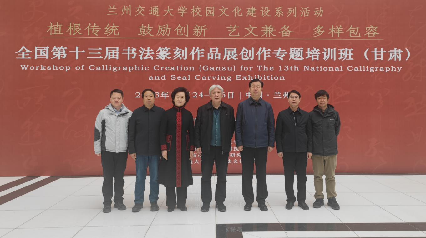 11月24日上午,全国第十三届书法篆刻作品展创作专题培训班开班仪式在兰州交通大学尚德楼三楼大报告厅举行。中国文联书法艺术中心原主任、中国书法家协会学术委员会原副主任刘恒,中国书法家协会草书委员会委员栾金广、刘长龙,全国(教育)书画协会常务理事、河南省书法家协会理事程志宏,中国书法家协会会员、西泠印社社员汤忠辉,甘肃省文联党组成员、副主席张有为,中国书法家协会理事、甘肃省文联副主席、甘肃省书法家协会主席安文丽,中国书法家协会理事、甘肃省书法家协会常务副主席陈新长,甘肃省书法家协会副主席张万胜、汪志刚、李维君,秘书长赵玉民,我校党委副书记贡力出席开班仪式,兰州交通大学原副校长马军党主持了专题讲座,开班仪式由甘肃省书法教育中心负责人主持。