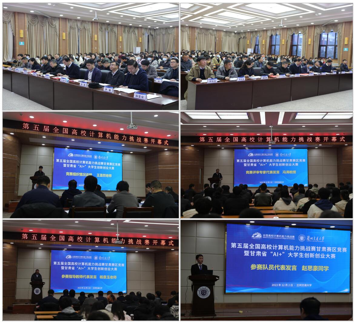 12月3日上午,由甘肃省教育厅、全国高等学校计算机教育研究会主办,我校承办的第五届全国高校计算机能力挑战赛甘肃赛区竞赛暨甘肃省“AI+”大学生创新创业大赛开幕式在第二教学楼报告厅举行。学校党委常委、副校长陈光武出席开幕式并致辞,甘肃省教育厅高教处副处长许力斌、竞赛组委会负责人党建武教授出席开幕式并对竞赛评审工作进行了深入细致的指导,来自全省各参赛学校计算机相关学院院长或系主任共13人担任评审专家,各参赛团队及指导教师代表共400余人参加了开幕式,开幕式由创新创业学院负责人主持。