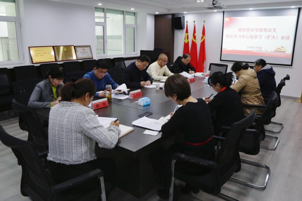 12月5日下午,继续教育学院党总支召开理论学习中心组学习(扩大)会议,校党委常委、副校长朱廷珺到会巡学旁听并点评指导,学院党总支书记主持会议,科级及以上干部参会。