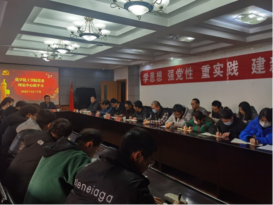 12月7日,化工学院党委理论学习中心组学习在学院学术厅召开,校党委副书记贡力到会巡学旁听并指导,院党委委员、组织员参加会议,科级干部、党支部书记及学生党员代表列席会议。