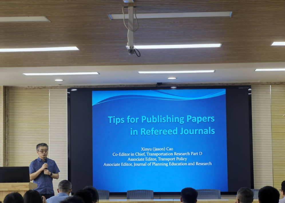 6月16日下午,依托学校2025年短期高端外国专家项目,应“海智计划”兰州交通大学站、交通运输学院联合邀请,明尼苏达大学公共事务学院教授、长安大学访问教授曹新宇在交通运输学院806学术报告厅,为交通运输学院师生作了题为《如何撰写国际同行审阅论文》的学术报告。