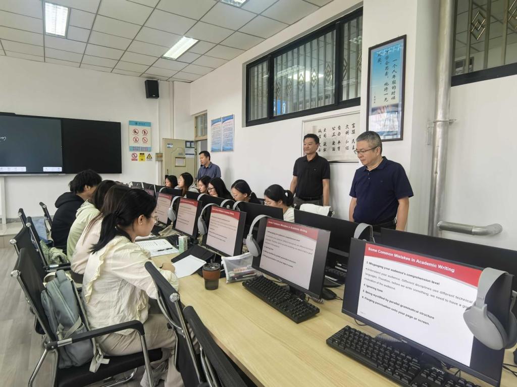 张弢还深入课堂一线,检查学院教师上课情况,随机听取了外国语学院陈洁教授的论文写作课程,并与学院负责人和任课教师进行了交流。