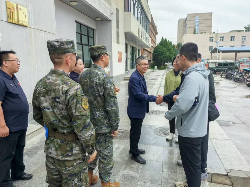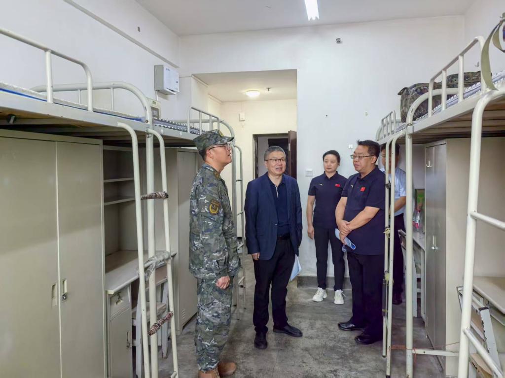 开营前,副校长张弢在学生工作部(处)、党委人民武装部负责人的陪同下,前往承训教官入驻公寓,亲切看望慰问全体承训官兵。张弢代表学校向承担本次军训任务的全体教官致以诚挚问候和衷心感谢。在讲话中,张弢特别强调,军训是大学新生入学后思想政治教育的重要载体,是开展爱国主义教育、厚植家国情怀的必修课,对锤炼意志品质、培养纪律观念、提升综合素质具有不可替代的作用。他详细了解了教官们的住宿条件及后勤保障落实情况,要求学校相关部门全力做好各项服务保障工作,确保军训顺利有序推进。同时,他要求学校武装部进一步加强与承训部队的沟通协调,密切配合,凝聚合力,共同推动军训工作高质量完成。