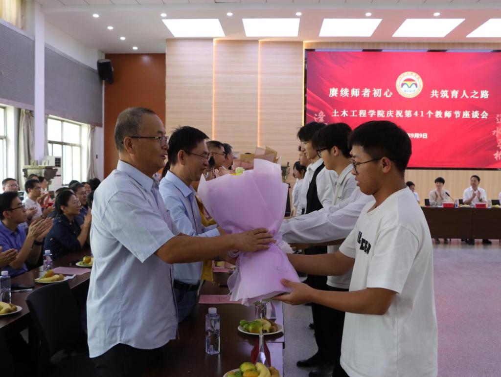 在第四十一个教师节来临之际,9月9日下午,土木工程学院举行“赓续师者初心,共筑育人之路”教师节座谈会。校党委常委、副校长朱廷珺出席活动,全体院领导、教职工代表、学生代表齐聚一堂,共庆教师佳节。座谈会由学院党委书记王娜主持。
