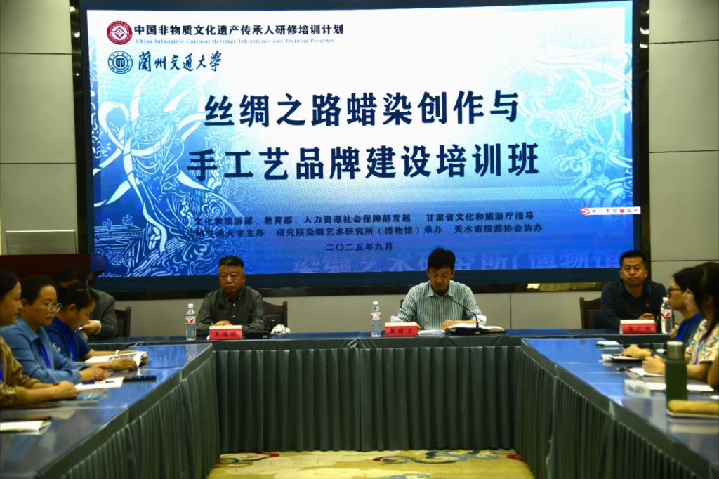 9月9日上午,中国非物质文化遗产传承人研培计划——丝绸之路蜡染创作与手工艺品牌建设培训班开班仪式在兰州交通大学举行。兰州交通大学研究院、天水市文化和旅游局、天水市旅游协会的相关同志以及来自全国15个省市的40名参培学员参加了此次开班仪式。