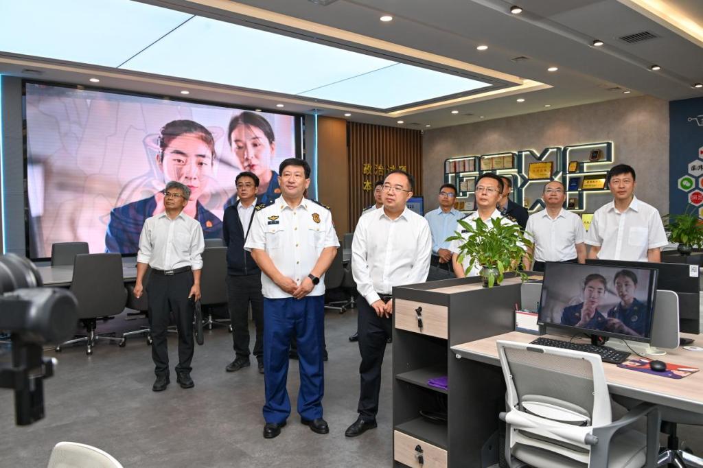 在总队长陆军、政委周海滨等领导的陪同下,陈喜春一行观摩了消防救援车辆和装备器材,参观了“橙耀陇原”消防工作成果展,考察了全媒体中心和重大灾害场景数据融合智慧平台。