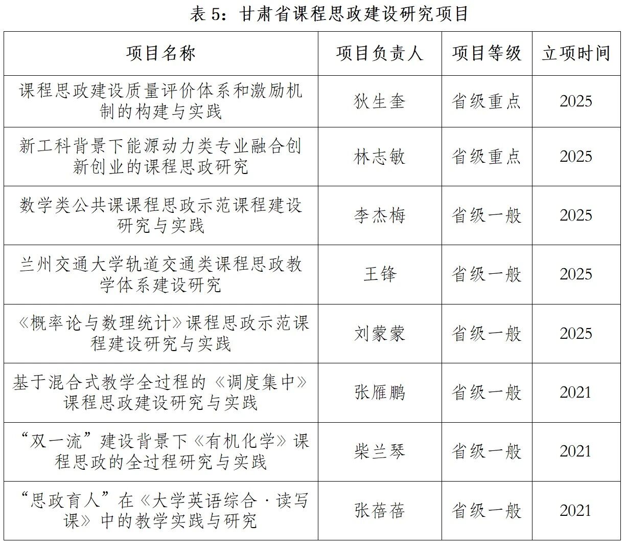 学校不断深化教学改革,鼓励广大教师加强课程思政教育教学研究,培育高质量课程思政教学研究成果。近5年来,8个项目获批“甘肃省课程思政建设研究项目”,260个项目获批校级课程思政教改研究项目。