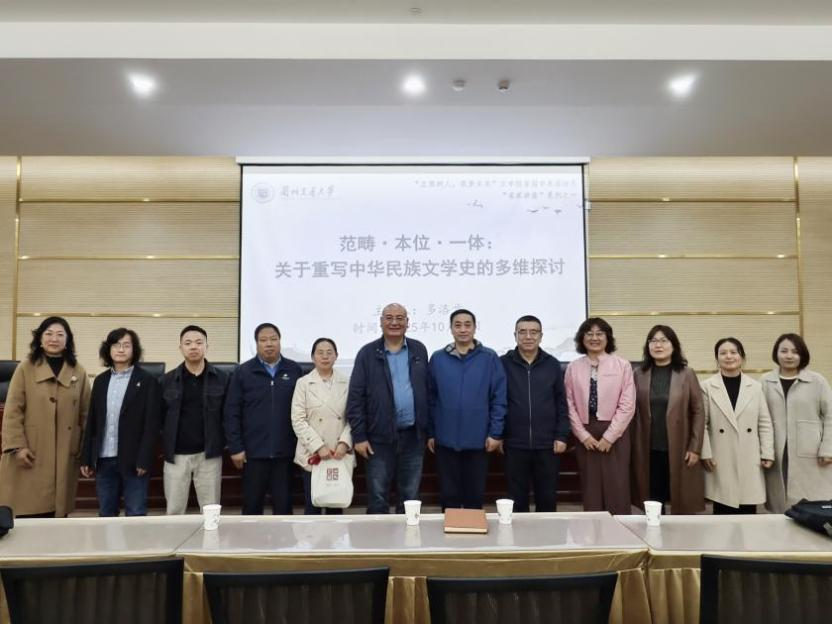 仪式结束后,学院特邀甘肃省社科联副主席、西北民族大学二级教授、博士生导师多洛肯开展题为“范畴·本位·一体:关于重写中华民族文学史的多维探讨”的讲座。