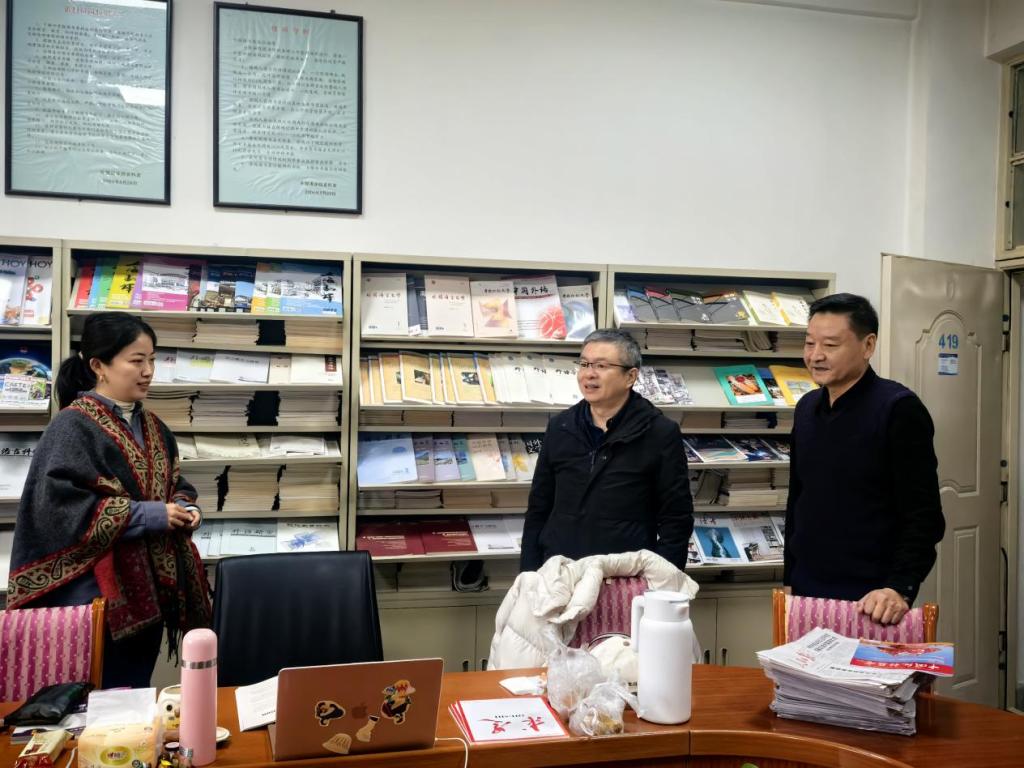 随后,在学院党政负责人的陪同下,他实地查看了学院语音室、图书资料室等教学设施,对教学与办公环境优化、资源配置效率等情况进行细致考察,并深入各办公室、系(教研室),向学院教师致以亲切慰问。