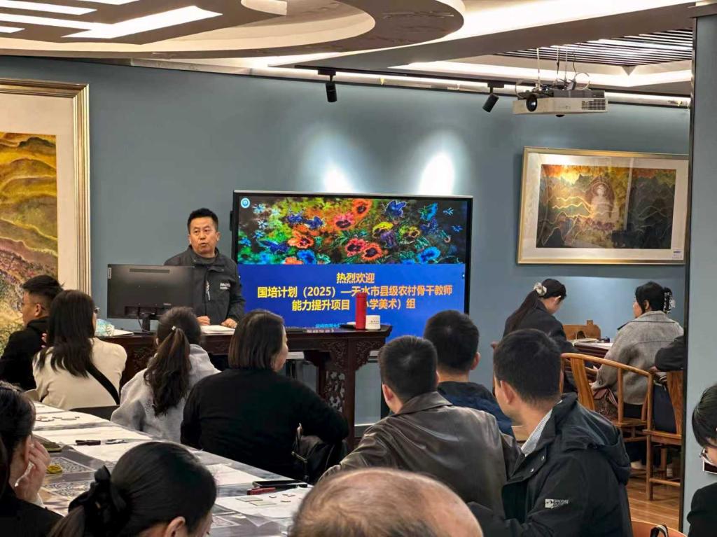 参观结束后,进行了交流研讨活动。西北师范大学继续教育学院负责此次培训的班主任表示:“将传统染缬艺术纳入培训实践环节,旨在帮助地方中小学美术教师挖掘优秀传统文化中的教学资源,丰富教学内容与形式。希望老师们能将此次参观学到的知识与技能运用到课堂教学中,让农村孩子也能感受传统工艺的魅力,提升文化自信。”参训教师们纷纷发言,分享参观收获与教学设想。