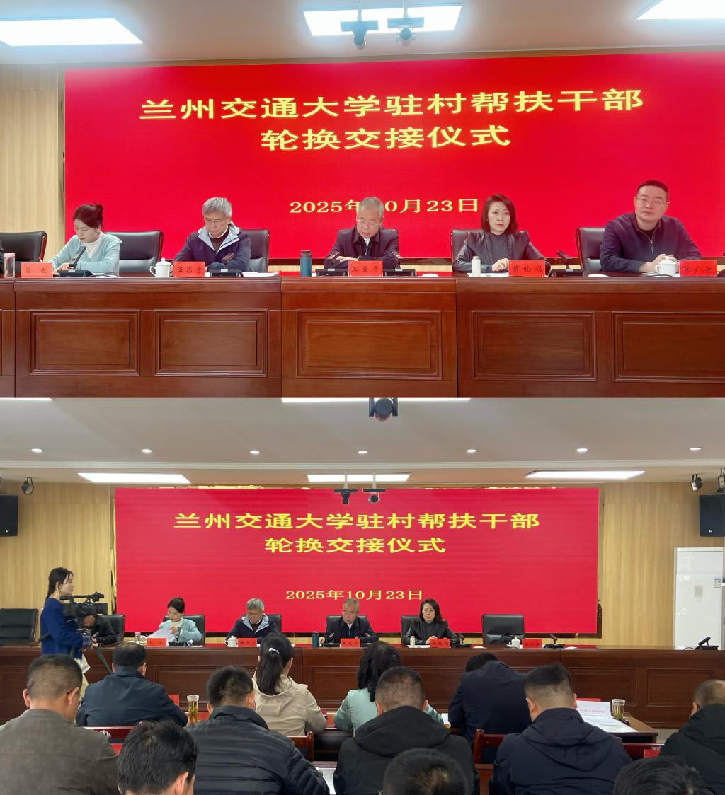 10月23日,校党委副书记王爱平带领学校党委组织部、帮扶办相关人员赴康乐县对我校新选派的驻村帮扶干部进行轮换交接。交接仪式在康乐县政府举行,由康乐县党委常委、组织部部长张广智主持。康乐县人民政府副县长、县驻村帮扶工作队总队长芮歌,县委组织部、县农业农村局分管负责同志,鸣鹿乡、八丹乡党委书记,兰州交通大学党委组织部、帮扶办相关负责人、全体驻村干部、新选派的工作队队员共同参加了交接仪式。