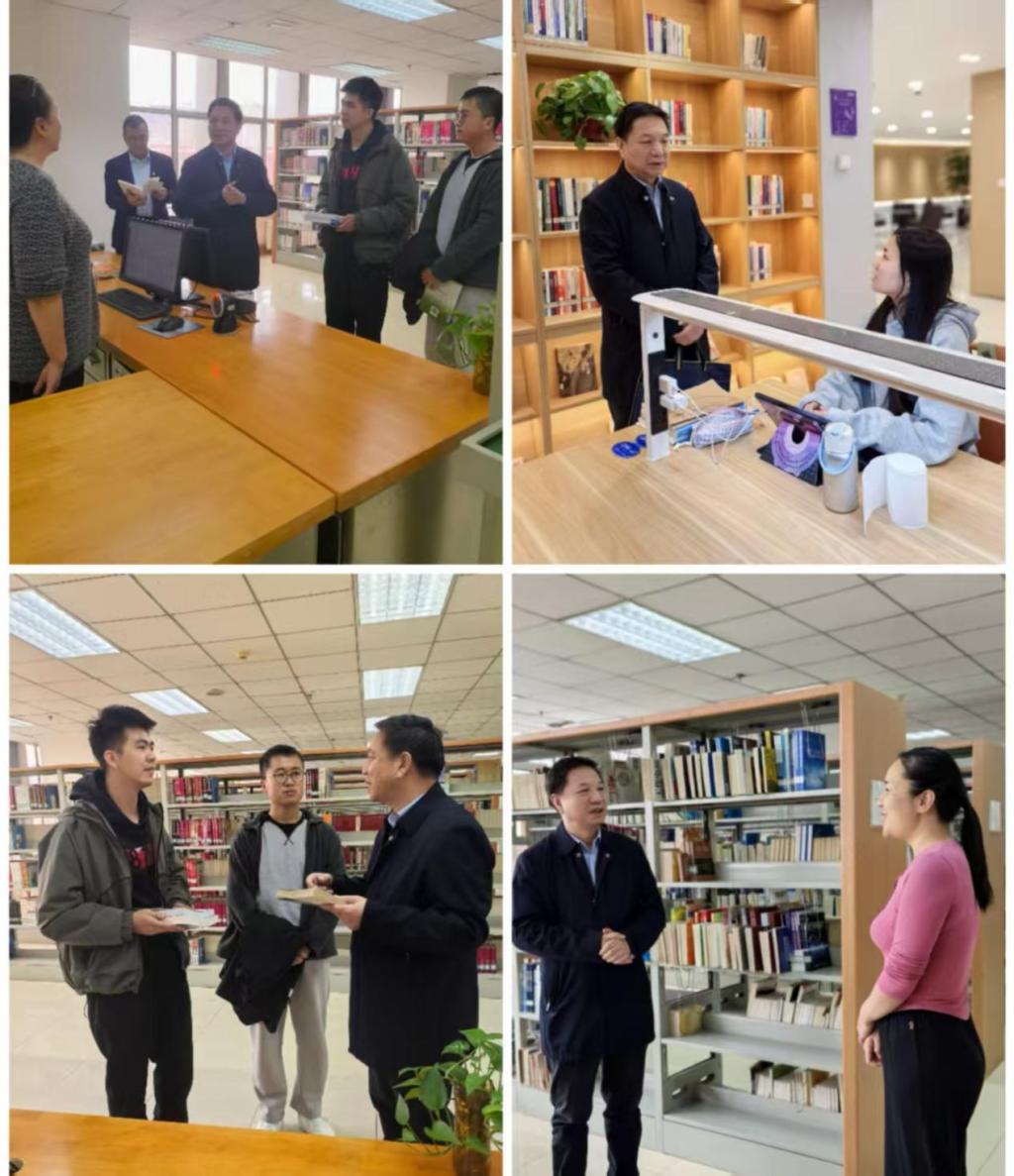 会后,朱廷珺深入图书馆综合阅览区、流通书库开展基层调研,与学生及管理员面对面交流,认真倾听并收集大家对图书馆建设与服务的意见建议。
