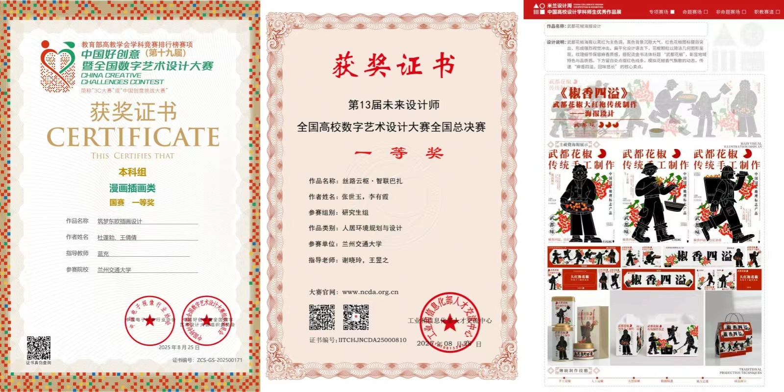 面向未来,学院清醒认识到:成绩是新的起跑线。对标国内顶尖院校,我们仍需在冲刺国赛最高奖项、打造全国标杆性作品上持续发力。为此,学院提前谋篇布局,将2026年确定为“竞赛质量提升年”,将重点实施 “四项战略工程” :一是品牌赛事拓展工程,主动对接国际顶级设计大赛,拓宽师生全球视野;二是优势项目攻坚工程,集结顶尖师资组建“夺金突击队”,对重点赛事定向突破;三是原创成果培育工程,深挖甘肃文化资源,打造具有地域标识度和全国影响力的特色作品;四是赛事主办升级工程,高水平办好学院自有品牌赛事,提升西北艺术设计教育话语权。