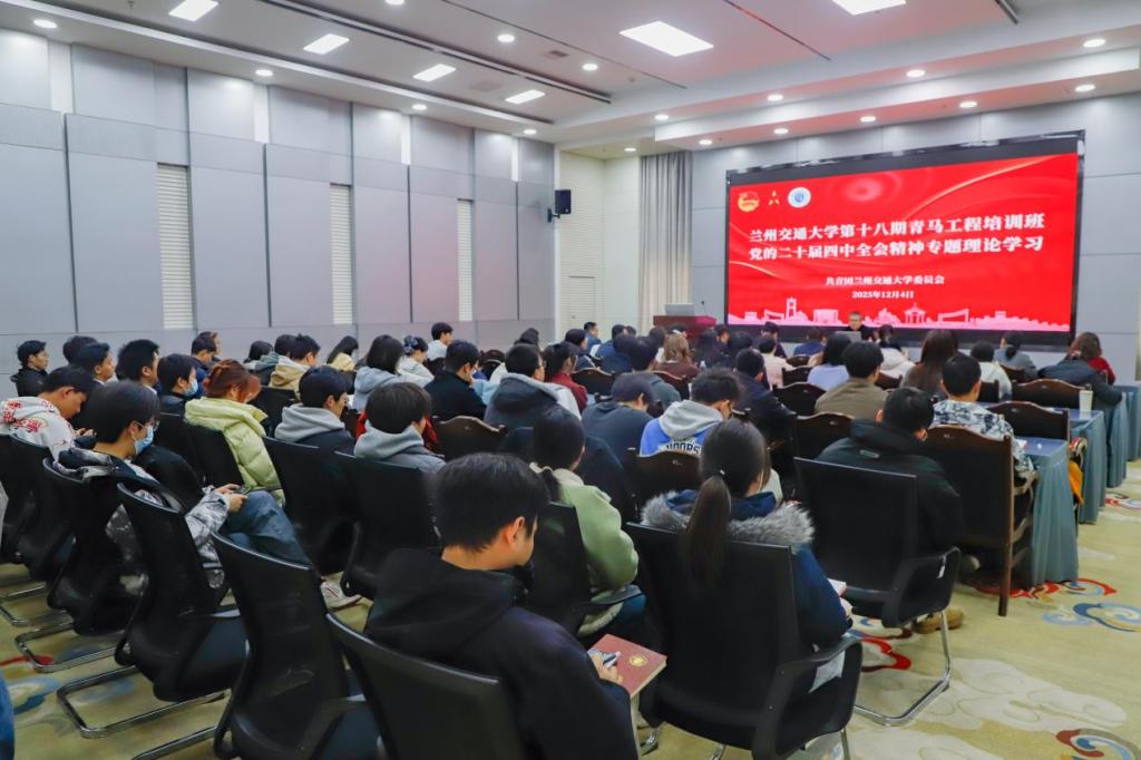 为深入学习贯彻党的二十届四中全会精神,深入开展“七进一深入”工作,推动全校共青团干部和青年骨干统一思想、凝聚共识、勇担使命,12月4日,校党委常委、副校长张弢为全体团干部、全体青马班学员作题为《深入学习党的二十届四中全会精神勇担社会主义现代化新使命》的专题宣讲。校团委全体人员、各学院团委书记、第十八期青马工程培训班全体学员共计80余人参加了学习。