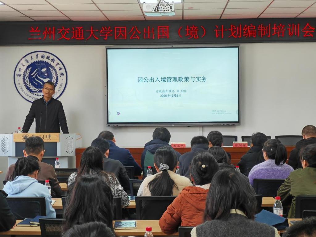 12月5日,我校开展2026度因公出国(境)计划编制工作专题培训会,特邀甘肃省人民政府外事办公室出入境管理处处长朱玉明做专题辅导。各学院(部)外事工作分管领导、联络员以及各单位有关人员参加培训。培训会由国际教育学院、国际交流中心(港澳台事务办公室)负责人主持。
