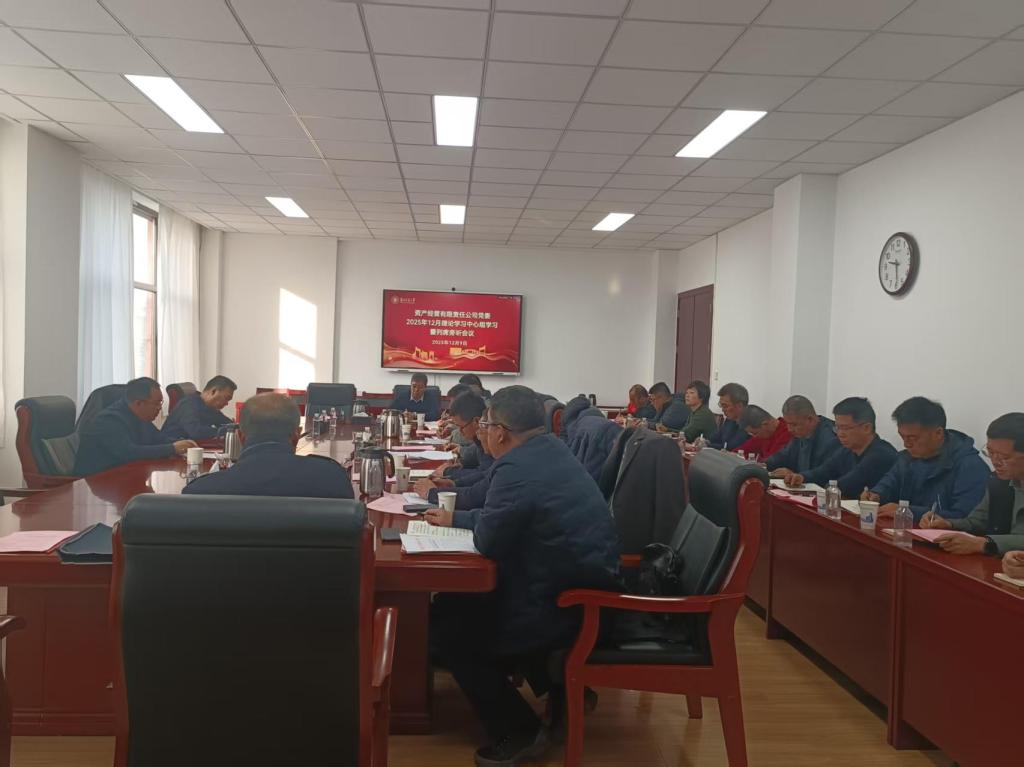12月9日,资产经营有限责任公司党委召开2025年12月份理论学习中心组(扩大)学习会议暨2025年列席旁听会议。会议由公司党委负责人主持,校党委常委、副校长陈喜春列席旁听并指导工作,校属企业副处级及以上干部参加会议。