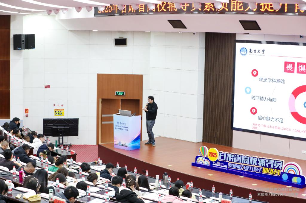 12月23日上午,特邀哈尔滨师范大学融媒体中心主任、全国最美高校辅导员、全国高校思想政治工作中青年骨干、全国高校网络教育名师、全国高校辅导员名师工作室负责人刘国权博士,喀什大学马克思主义学院党委副书记(挂职)、南昌大学专职辅导员、全国最美高校辅导员、高校辅导员名师工作室负责人胡邦宁老师担任主讲嘉宾并分别作专题报告。报告会上,刘国权结合自身深耕一线的育人实践,围绕新时代高校辅导员育人质效提升的策略与路径分享宝贵经验。他强调,辅导员要当好学生成长的深情陪伴者、人生规划的深度思考者、时代政策的深刻践行者,始终做到向上着眼明方向、向下扎根办实事、向内发力强本领。要懂青年话语、做青年研究;少自我感动、多双向奔赴;有人格魅力,能解决难题;善日积月累、懂潜移默化。