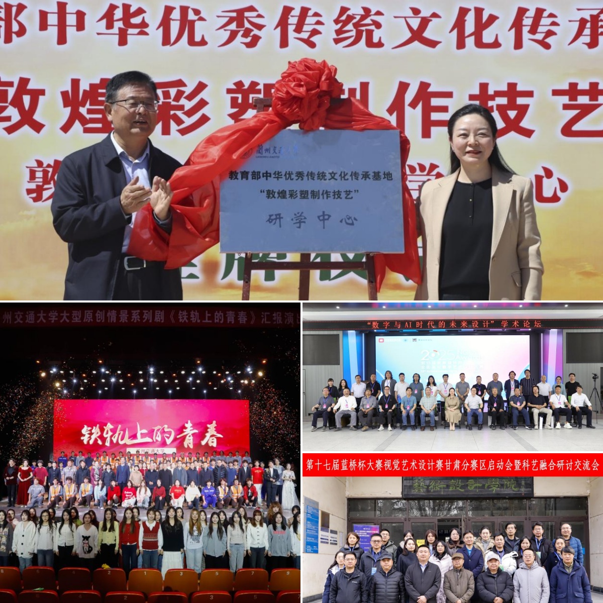 学院专业建设紧扣交通强国、文化强国战略,构建“交通场景设计—数字媒体交互—敦煌文化创新”特色专业集群;坚持以优良作风赋能学生成长成才,实施“学业导师制”,为每名学生配备专业指导教师,2025年各类学科竞赛中累计荣获国奖228项,省奖425项。学院通过教育部“敦煌彩塑制作技艺”传承基地进行美育辐射,依托“乡村振兴设计工作坊”“非遗文化传承团队”等实践平台,引导学生将专业能力转化为服务社会的实践动能。打造“课堂教美、实践立美、文化涵美”三位一体美育工作体系,原创舞台剧《铁轨上的青春》吸引近千名师生参与观看,实现美育与思政深度融合,知识传授、能力培养与价值引领深度融合。