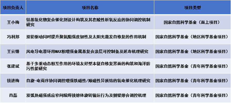 图1. 2025年度材料科学与工程学院国家自然科学基金获批项目