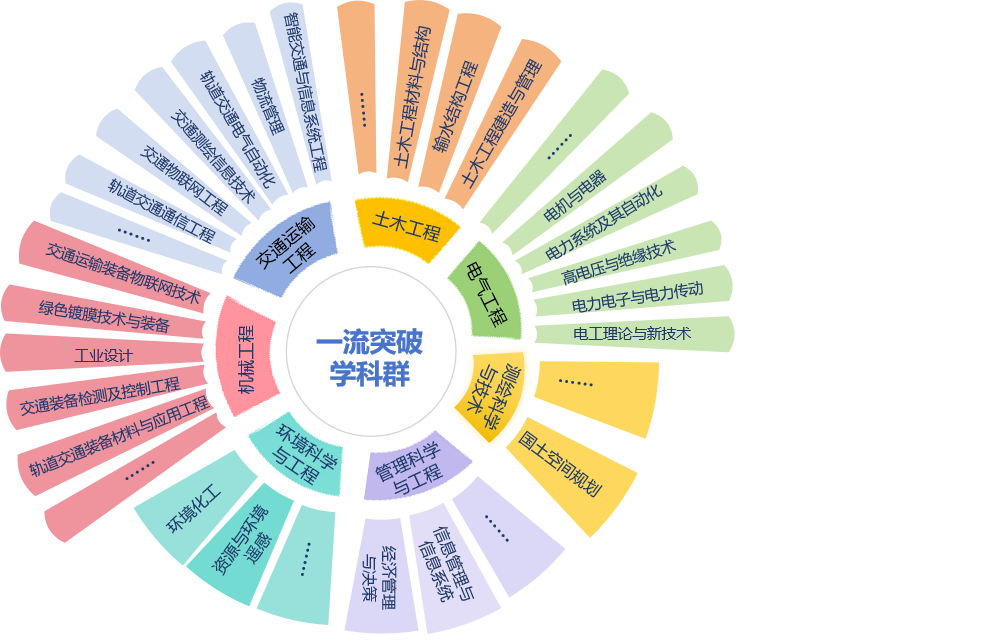 聚焦一流学科攻坚突破,学科整体实力实现新跃升。学校紧紧围绕立德树人根本任务和服务国家重大需求导向,深入实施交通运输工程国家一流学科突破工程建设,聚焦学科评估核心指标体系,按照“学科引领、资源共享、重点突破”的原则,开展学科建设工作,在省教育厅组织的一流学科突破工程中期评价中结果为“优秀”。一流学科突破工程人才培养成果丰硕,获评国家级教学成果二等奖4项、国家级一流本科专业建设点21个、国家级一流课程14门、国家级虚拟教研室3个、黄大年式教学团队2个,并有多个党支部获评全国党建工作样板支部。学科平台能级提升,拥有省部级以上科研平台20个,其中国家铁路局“高原铁路运输智慧管控铁路行业重点实验室”填补了复杂环境下轨道交通运营管理特殊实验的技术空白。科研与社会服务贡献突出,承担包括川藏铁路绿色设计、时速400公里高铁关键技术等在内的国家级项目182项,横向项目1700余项。多项创新成果成功应用于川藏铁路、中老铁路等国家重大工程,为45家以上铁路相关企业提供了高质量科技服务。