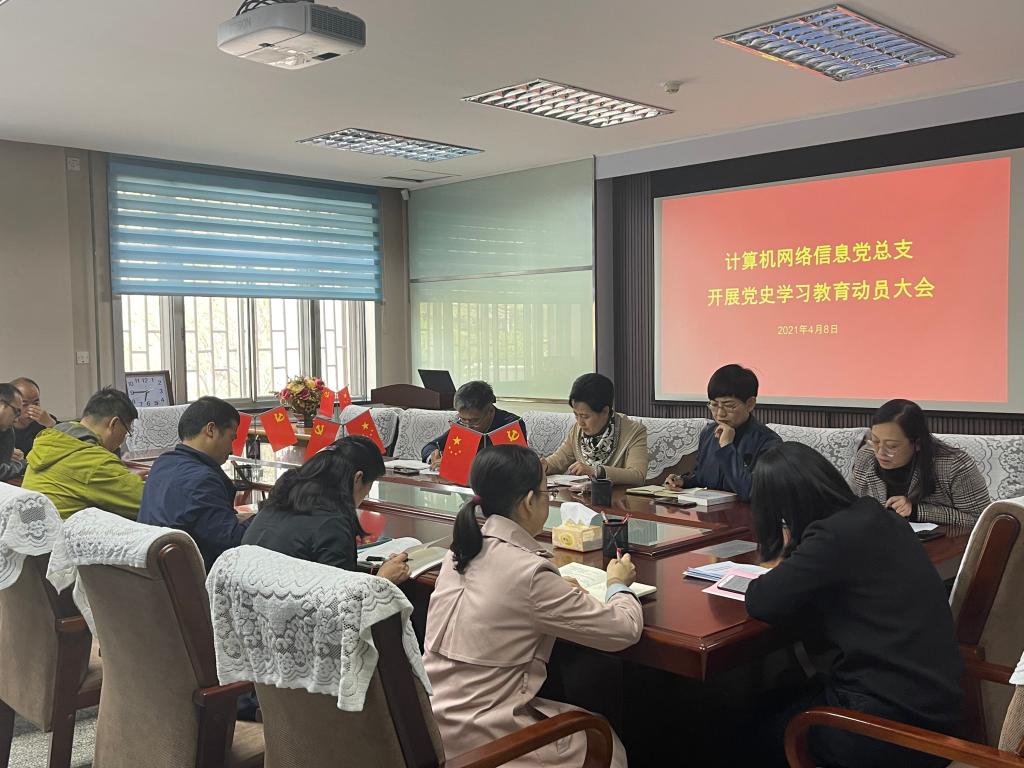 4月8日,计算机网络信息党总支召开党史学习教育工作部署会议,会议由网络信息中心主任蒋占军主持,党总支全体党员和计算机实验教学示范中心主要负责人参加会议。