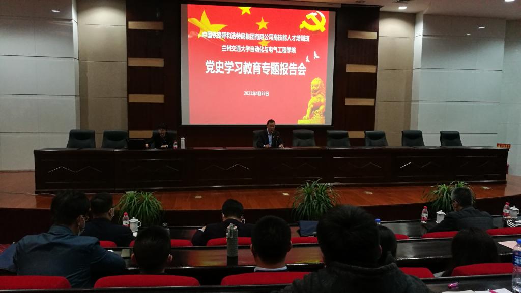 应我校自动化学院邀请,4月22日下午,甘肃省委党校(甘肃行政学院)党的建设和领导科学教研部主任高璐佳在学校国际会展中心大报告厅作了题为“弘扬‘红船精神’、走好新的长征路”的党史学习教育专题报告。报告会由学院党委书记汤旻安主持。学院领导班子、教工党员、学生党员和中国铁路呼和浩特局集团有限公司高技能人才培训班学员360余名党员参加了报告会。