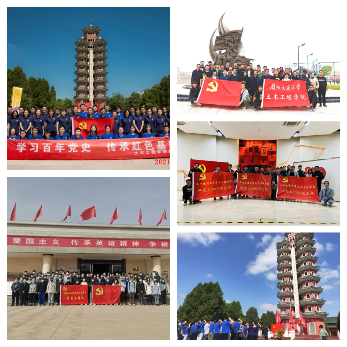 紧扣知行合一,筑牢理想信仰之基。为深入推进党史学习教育,做到学史明理、学史增信、学史崇德、学史力行,进一步发扬革命精神,弘扬优良传统,传承红色基因,不断提升政治判断力、政治领悟力、政治执行力,时刻自重自省自警自励,做到慎独慎微慎始慎终。学院党委组织师生党员赴会宁会师纪念馆、八路军驻兰州办事处、兰州市战役纪念馆、甘肃省博物馆红色厅等纪念馆和兰州战役窦家山战斗纪念广场、兰州市烈士陵园开展党史学习教育。在会宁会师纪念馆和兰州战役窦家山战斗纪念广场,大家重温了入党誓词,感受革命先辈们为革命献身的伟大情怀,汲取奋进力量。开展了“网上重走长征路”甘肃段活动、主题党日活动、“诵读一本党史经典书籍”活动、撰写一篇党史学习心得体会 、“学习百年党史,践行初心使命”主题演讲比赛、“青春颂歌献给党”庆祝中国共产党建党100周年校园拉歌、“坚守初心使命,传承红色基因”主题征文比赛等活动,引导全体师生自觉传承红色基因,牢记初心使命,提振精神士气,汲取奋斗力量,激发内生动力,以优异成绩迎接建党100周年。