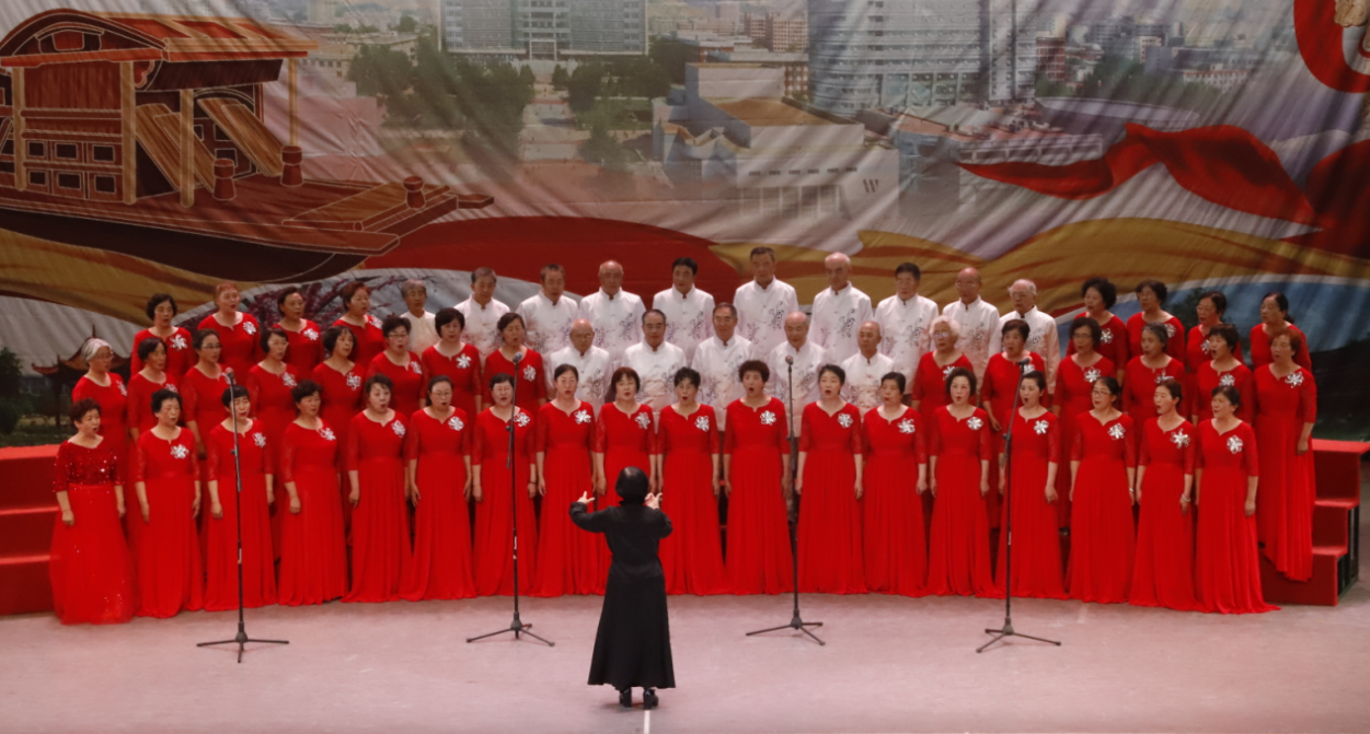 庆祝大会后,老年大学的学员和老年文体协会的会员们为参加大会老同志奉献了一台精彩的文艺节目。文艺汇演以柔力球表演《开门红》开场,结尾以大合唱《祖国颂》叠唱把汇演推向了高潮。歌唱、舞蹈、太极、器乐演奏等11个节目,精彩纷呈,歌颂党、歌颂美好幸福的新生活,充分展示了当代老同志的精神风貌和老年大学各个班级的教学成果。