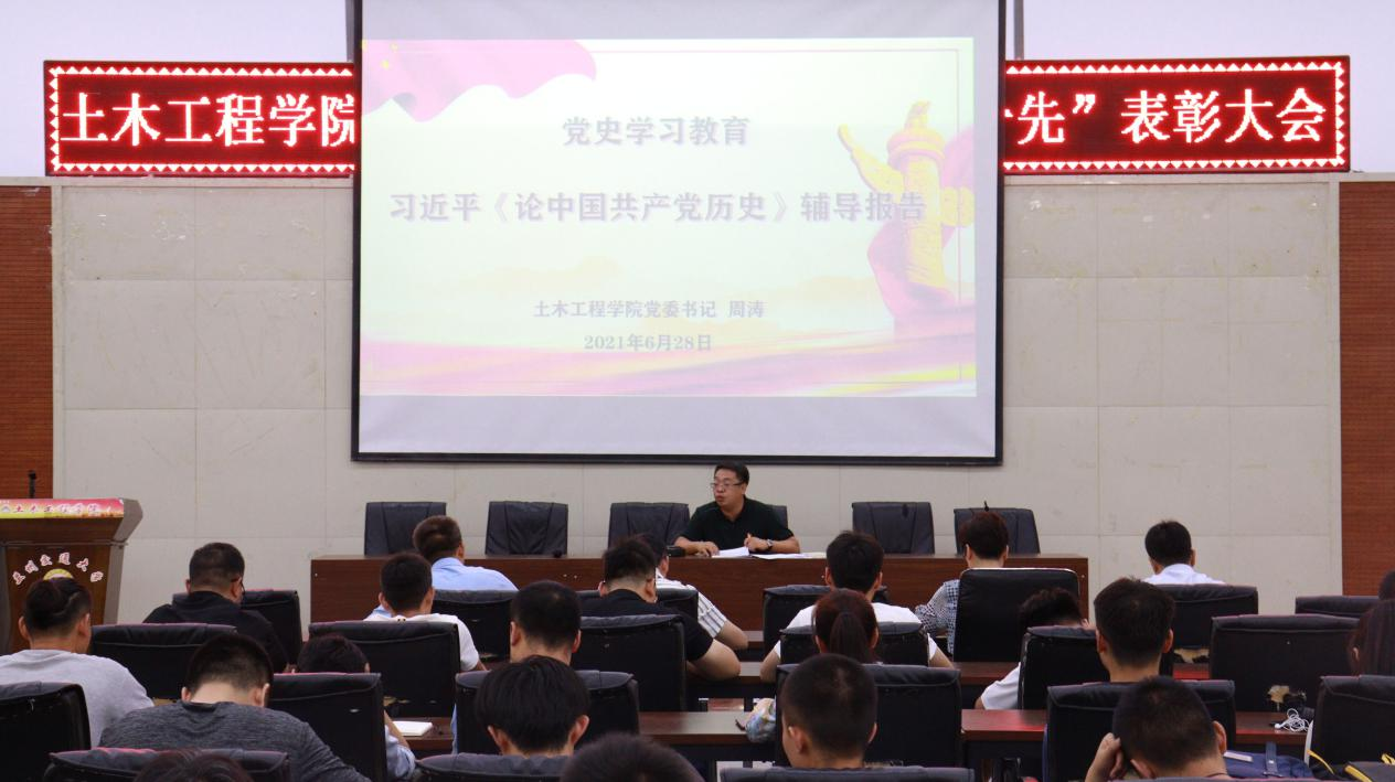 在庆祝中国共产党成立100周年之际,为表彰先进,树立榜样,激励学院各级党组织和广大党员不忘初心、牢记使命,从榜样模范中汲取奋斗力量,持续发挥战斗堡垒和先锋模范作用,以党的建设引领学院特色发展,6月28日下午,土木工程学院党委召开庆祝建党100周年暨“两优一先”表彰大会,学院领导班子成员、全体党支部书记、支部委员和党员代表参加了表彰大会。