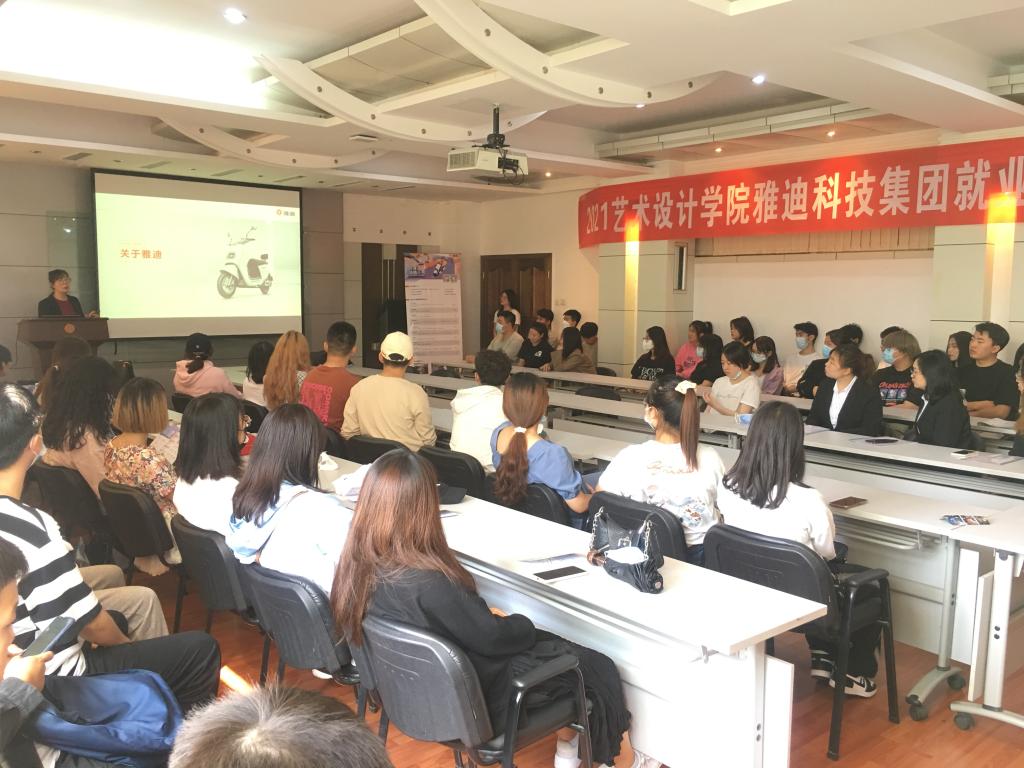 9月16日下午,在学院学术厅举办了雅迪科技集团有限公司2021届毕业生秋季专场宣讲会暨校企合作推进会。学院希望扩大深化校企合作范围,将合作对象由艺术设计学院牵头扩大到企业所涉及需求的各类专业人才。雅迪科技集团各部门负责人也提出了各部门对所需毕业生的要求和应具备的能力以及现阶段企业急需输入人才的素质要求。校企双方就建立校企合作设计中心,双方共同培养人才,毕业生提前上岗培训,如何将实践、实习教学和岗前培训有机融合展开了研讨交流。