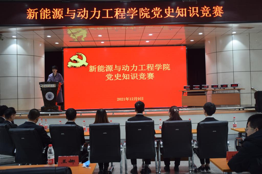 为重温百年党史,回顾党的光辉历程,进一步增强党员学习党史的主动性和积极性,继承与发扬党的成功经验和优良传统,学好党史,学深党史,学懂党史,12月9日,新能源与动力工程学院党委在第五教学楼翠英厅举办了党史知识竞赛活动,以此提升师生党员政治觉悟,再次掀起学习党史热潮,同时也是对阶段性学习的一种检测。
