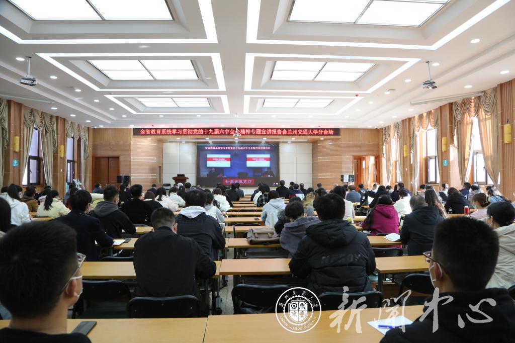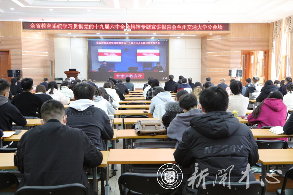 根据省委关于学习贯彻党的十九届六中全会精神全省集中宣讲安排,省教育厅于2021年11月29日下午举办全省教育系统学习贯彻党的十九届六中全会精神省委宣讲团专题宣讲报告会,邀请兰州大学马克思主义学院教授、博士生导师刘先春作宣讲。省教育厅设立主会场,省教育厅党组书记、厅长,省委教育工委书记王海燕主持会议。学校在二教报告厅设立视频分会场,全体在家校领导、党委理论学习中心组成员、校党史学习教育领导小组办公室相关人员、马克思主义学院全体思政课教师和研究生、学校统一战线部分教师代表100余人参加本次宣讲报告会。