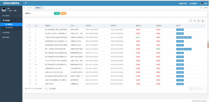 第二步:进入学科竞赛,点击左侧“我要报名”栏目,查找“第十三届全国大学生电子商务‘创新、创意及创业’挑战赛兰州交通大学校级选拔赛”,点击“我要报名”按钮后在弹窗中再次点击“我要报名”;