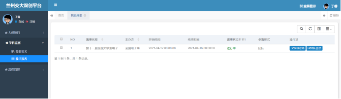 2.完成大赛官网报名后的团队还需在我校“创新创业管理平台”完成竞赛报名。操作流程如下: